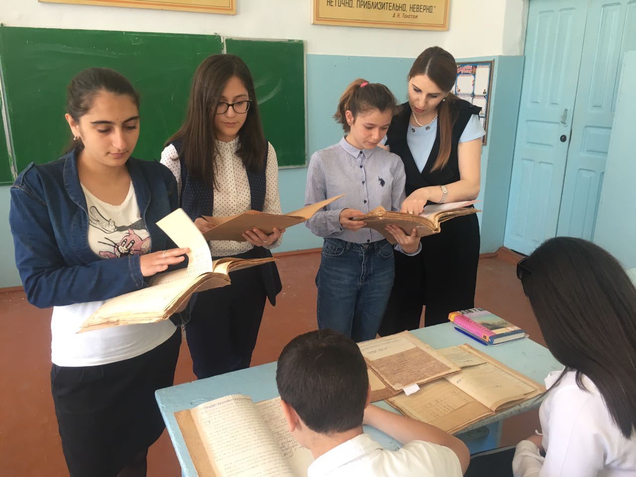 17 мая 2018 года состоялись школьные уроки для учащихся г. Дербента на тему "Традиции сохранения архивного наследия г. Дербент", проводимые в рамках празднования 100-летия государственной архивной службы России и 95-летия архивной службы Дагестан. Работники архивного отдела посетили МБОУ "Средняя общеобразовательная школа- № 1" им. В. Громаковского городского округа "город Дербент". Учащиеся были ознакомлены с историей и деятельностью архивного учреждения, составом объема фондов архива, а так же выполнениями задач, поставленные перед работниками отдела для сохранения документов, которые относятся к исторической ценности. Так же школьниками для обозрения были представлены документы Фонда № 2 "Горисполком" за 1925г., 1930г., 1940г.