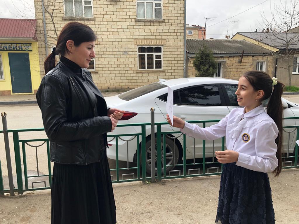 Во исполнении «Плана мероприятий по реализации Комплексного плана противодействия идеологии терроризма в РФ на 2019 г.» педагогом-организатором Махмудовой Диларой Раидиновной совместно с учащимися Прогимназии «Президент» была проведена общегородская информационно – просветительская акция «Нам нужен мирный Дагестан». В рамках проведения акции среди прохожих по пер.Красноармейский, 39 были распространены листовки с изображением голубей и со стихами о мире. В акции приняли участие 20 человек.