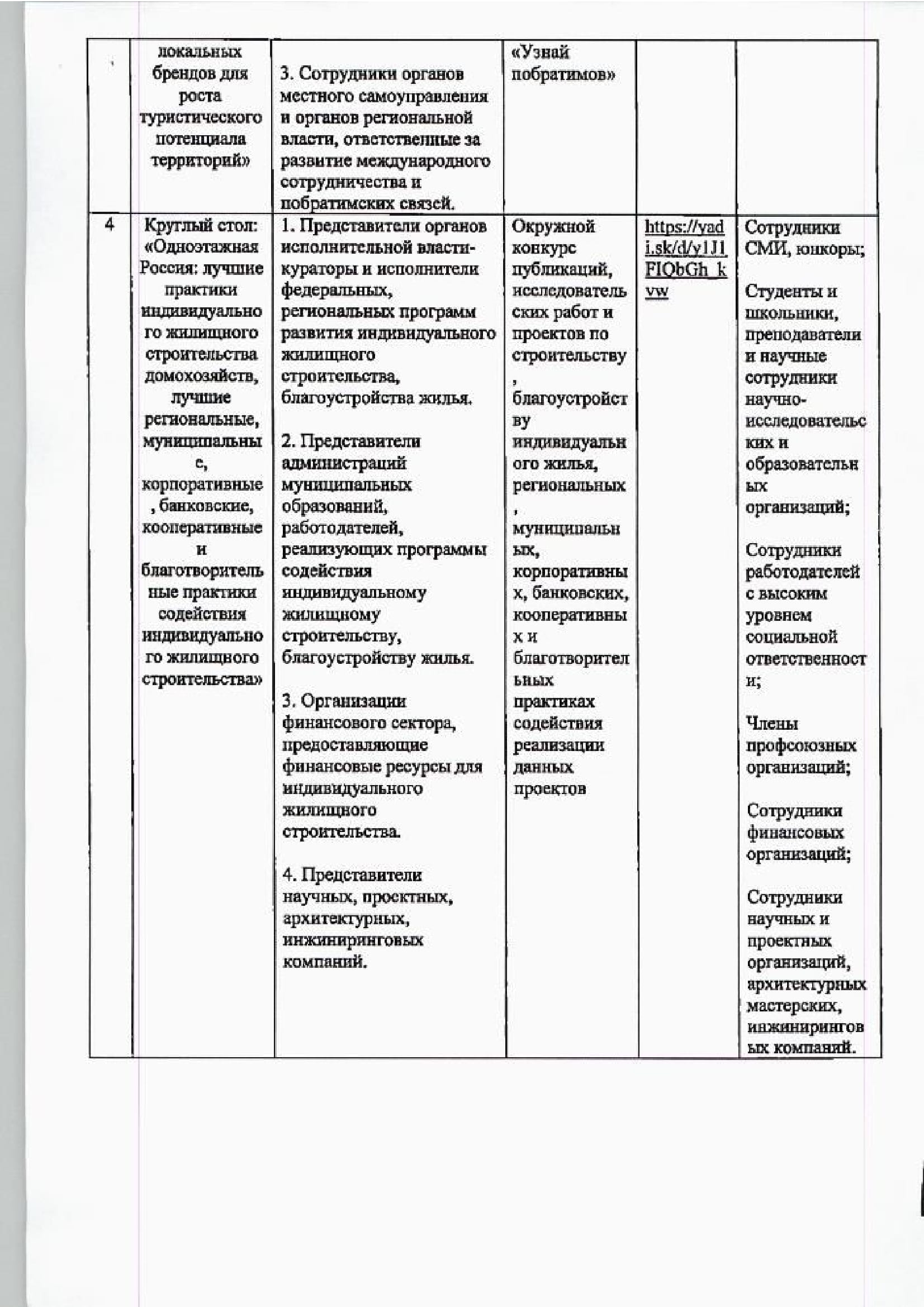 * Круглый стол. Тема: «Одноэтажная Россия: лучшие практики индивидуального жилищного строительства домохозяйств, лучшие региональные, муниципальные, корпоративные, банковские, кооперативные и благотворительные практики содействия индивидуального жилищного строительства».