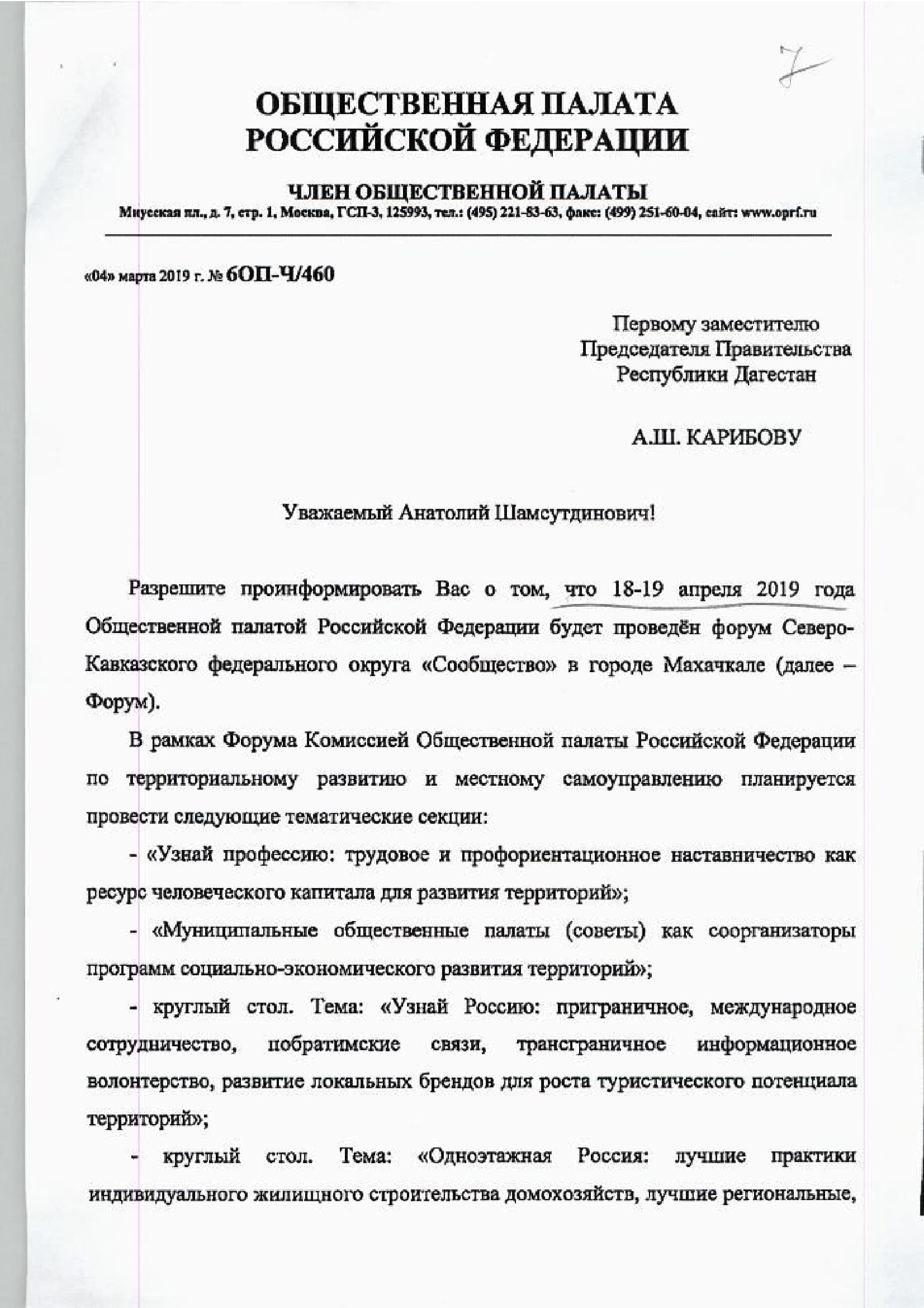 18 - 19 апреля 2019 года Общественной палатой Российской Федерации будет проведен форум Северо-Кавказского федерального округа «Сообщество» в городе Махачкале.