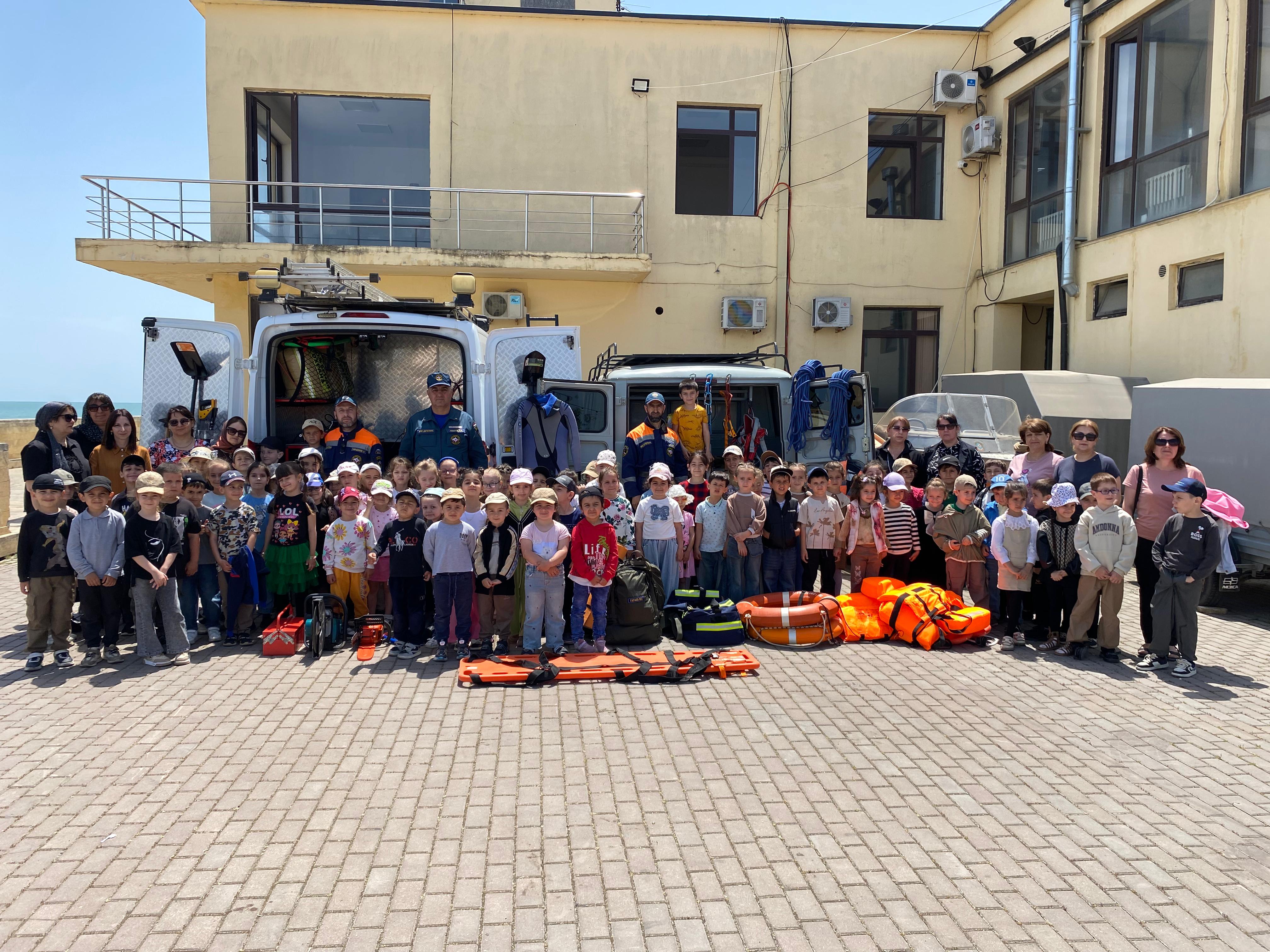 В преддверии празднования Международного дня защиты детей 28 мая Дербентское поисково-спасательное подразделение организовало День отрытых дверей и урок основы безопасности жизнедеятельности с приглашением детей дошкольных образовательных учреждений города.