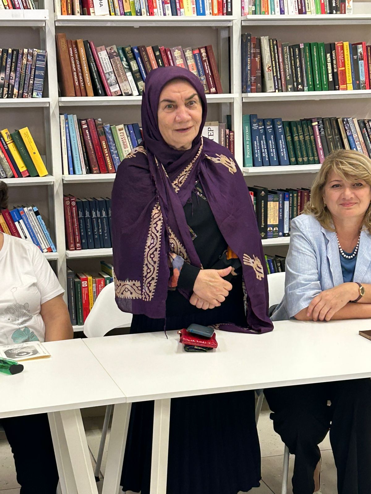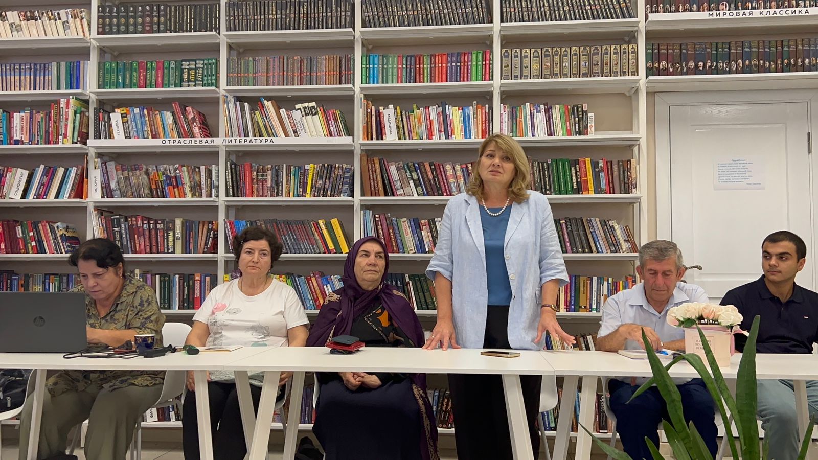 Подчеркнув, что язык - душа народа, связующее звено между разными поколениями, Диана Алиева рассказала о том, что с 2017 года в нашей стране реализуется масштабный, не имевший ранее прецедентов книжный проект «Современная литература народов России». Цель проекта ‒ показать во всем разнообразии отечественных авторов, пишущих на национальных языках, перевести их произведения на русский язык. К настоящему времени увидели свет семь антологий: «Проза», «Поэзия», «Драматургия», «Художественная публицистика», «Детская литература», «Поэзия и проза тюркских и монгольских народов» и «Народная мудрость». Дагестан представлен во всех изданиях этой уникальной серии. Из дербентских поэтов в проект вошли произведения Фахретдина Оруджа, Тагира Салеха, Зейнаб Дербендли, Тахмираза Имамова, Пейсаха Мишиева, Эльмиры Ашуралиевой. В Центральной городской библиотеке имеются все книги «Современной литературы народов России», и они были представлены на подготовленной библиотекарями выставке.