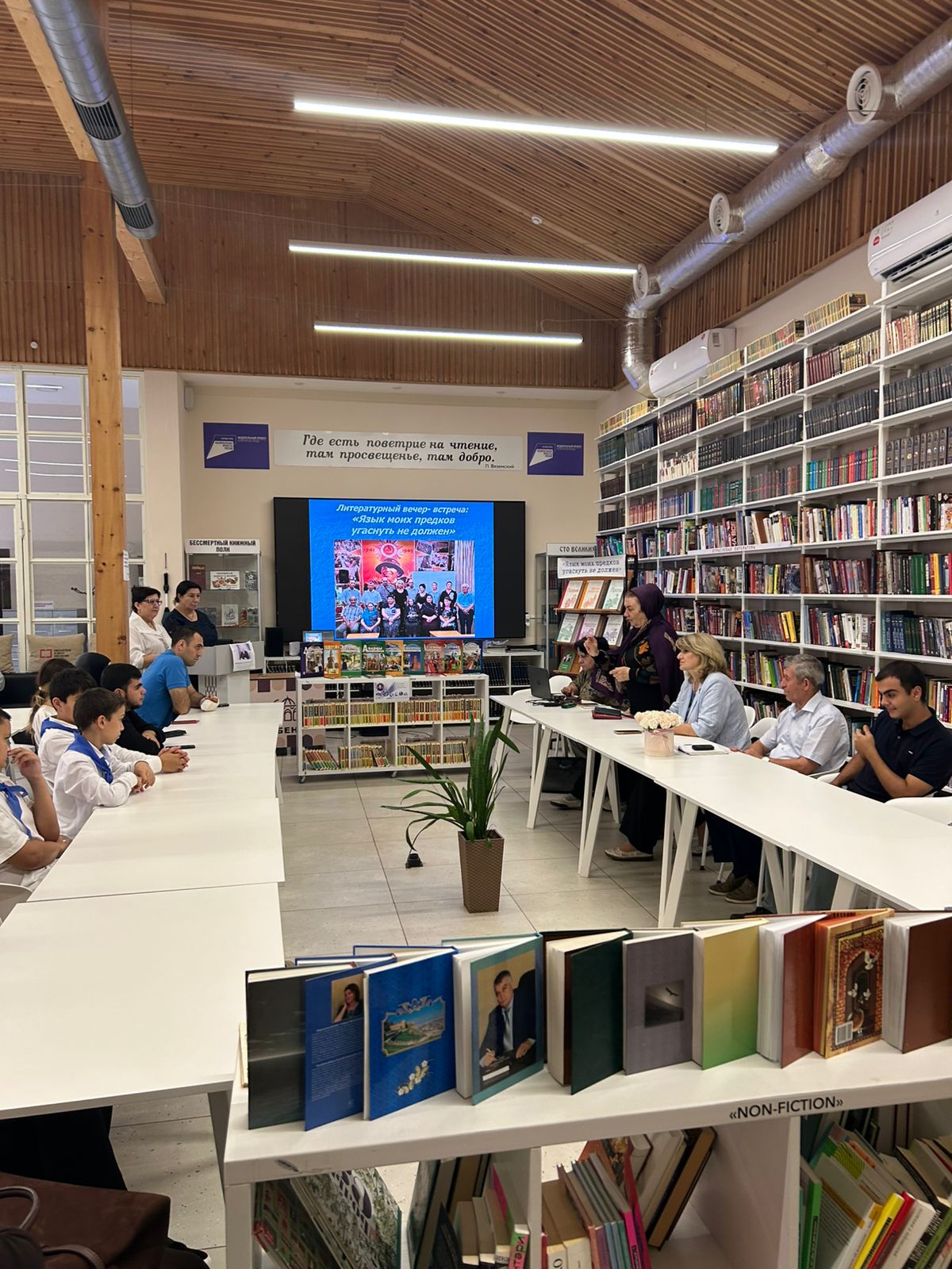 Из рассказа сотрудников библиотеки подрастающее поколение узнало о творчестве дербентских поэтов - Гумри, Зярнигяр, Наримана Агасиева, Камала Алиханова, Рены Аскеровой, Сардара Абиева, Зейнаб Султанохмедовой, Гюльбике Омаровой, Эльмиры Ашурбековой, Михаила Дадашева, Миши Бахшиева, Геннадия Рахмилова и многих других.