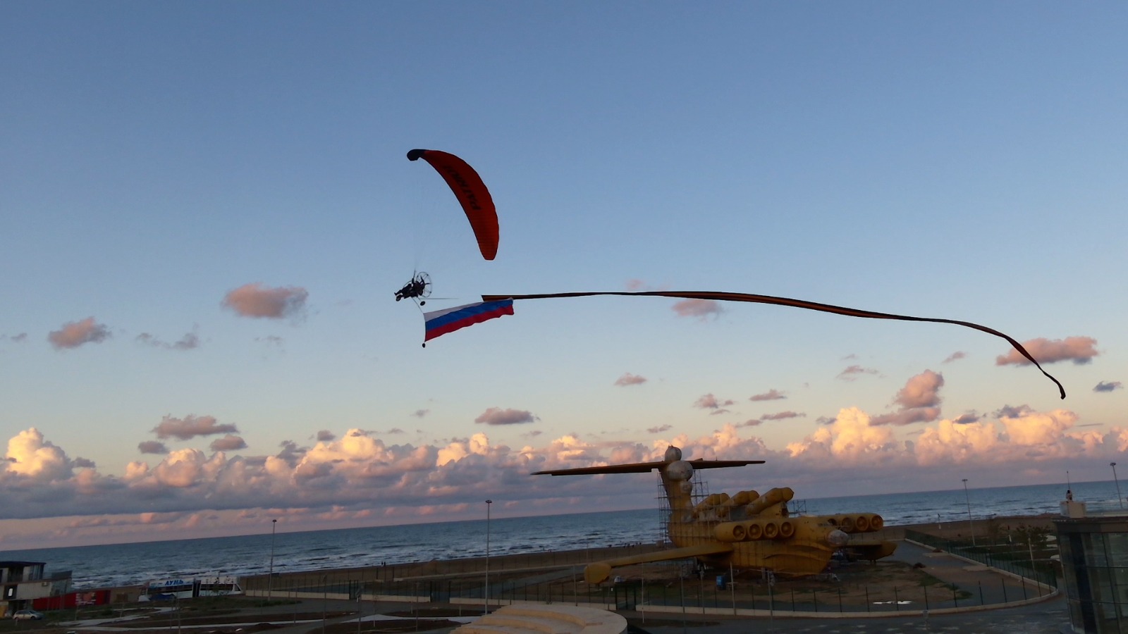 Этот перелет посвящается 80-летию Великой Победы над фашизмом.Перелет, который проходит на двухместном паралете вдоль главного Кавказского хребта от Каспийского моря к Черному морю, стартовал 15 сентября из древнего Дербента. Как рассказал руководитель и организатор проекта Игорь Потапкин, запланирована акция, в ходе которой пройдут полеты с большой 80-метровой Георгиевской лентой. Финиш полета на паралете запланирован через две недели в г.Анапа Краснодарского края.