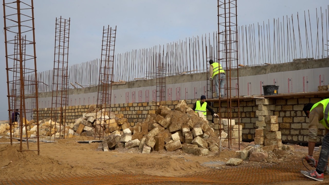«В настоящее время проводятся работы по устройству опалубок перекрытия и фундамента, кладка стен из ракушечного известняка, горизонтальная гидроизоляция фундаментов, а также разработка грунта под канализационно-насосные станции. На объекте задействовано пять единиц техники и 20 рабочих», — отметил он.