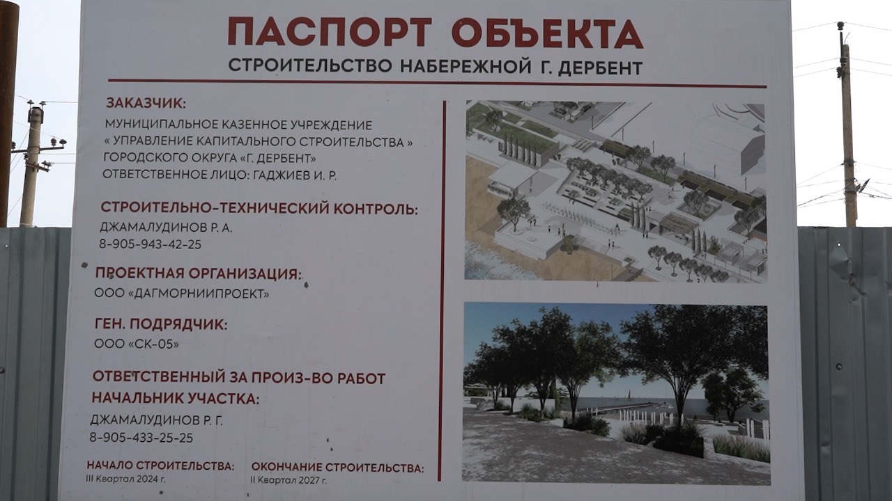 В Дербенте продолжается строительство новой набережной возле моста на улице Пушкина. Протяженность объекта составляет 300 метров, а площадь — 1,5 гектара. Реализация проекта ведётся в рамках государственной программы Российской Федерации «Развитие Северо-Кавказского федерального округа».