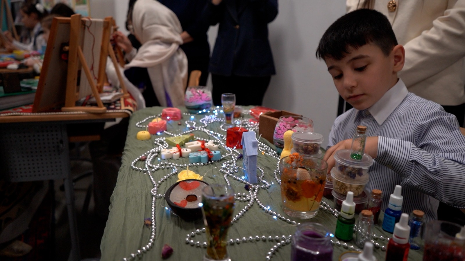 Участников мероприятия празднично встретили творческие мастерские, подготовленные школами и учреждениями дополнительного образования Дербента. Были представлены направления декоративно-прикладного творчества, робототехники, моделирования, ковроткачества, художественного дизайна и другие кружковые программы. Начальник управления образования Чимназ Алиева ознакомила замглавы с экспозициями. Без внимания не остался ни один из участников «Города мастеров». В рамках выставки творческих работ юный художник подарил Зейналову акриловую миниатюру с изображением крепости Нарын-Калы.