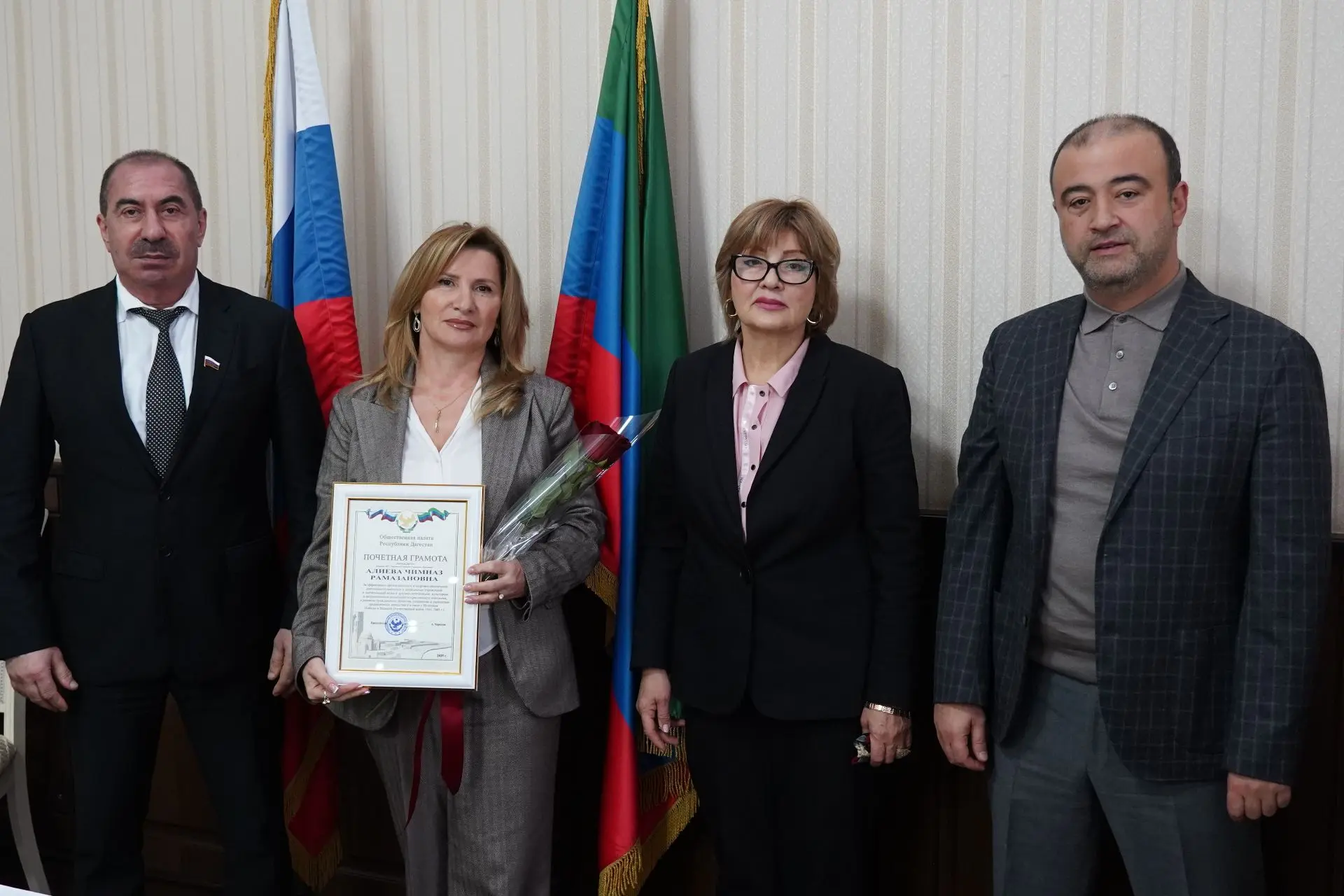 В рамках заседания состоялось награждение Почётными грамотами Общественной палаты Республики Дагестан. Грамоты были вручены начальнику Управления образования Дербента Чимназ Алиевой, директору ДДЮТ Заидат Мазановой и художественному руководителю хореографической школы «Гюнеш».