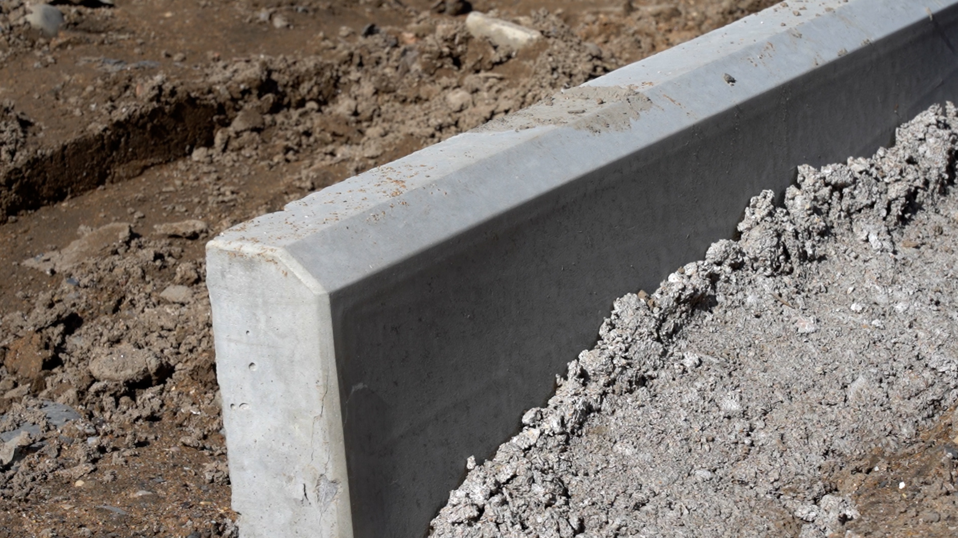Установлены бордюры и поребрики, проложен нижний слой асфальта.