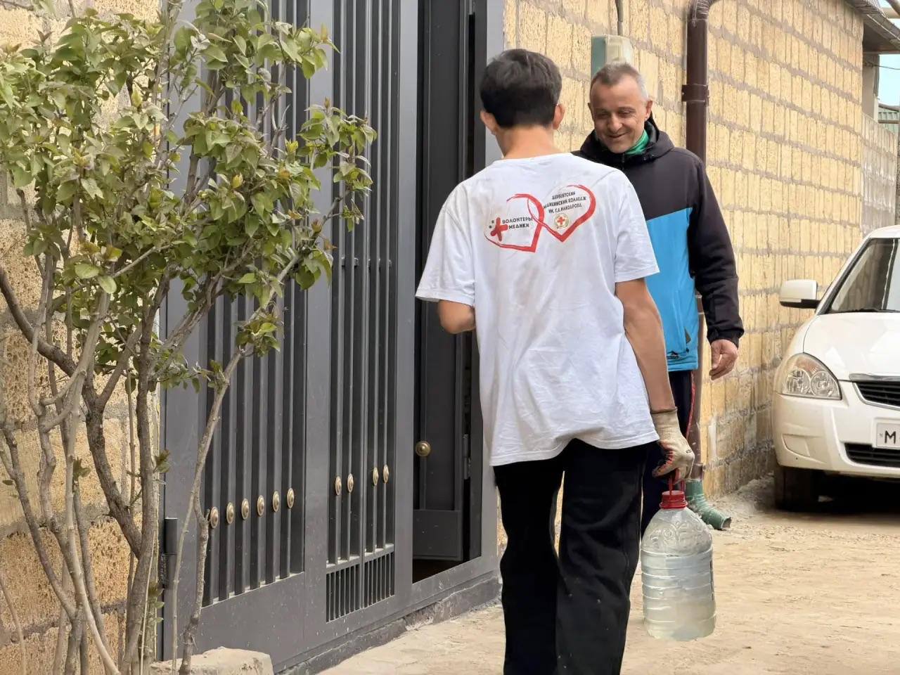 Студенты-волонтеры Медицинского колледжа имени Илизарова доставили бутилированную воду в микрорайон Аэропорт. Помощь охватила порядка 80 домов по улицам Персиковая, Вишнёвая и Мусы Манарова.