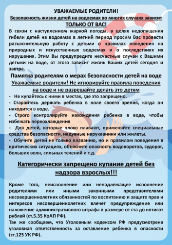 Памятка родителям о мерах безопасности на воде